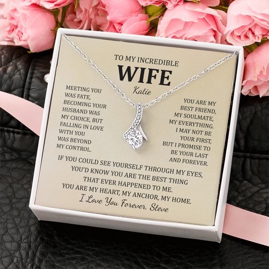 Personalized To My Wife Necklace - Romantic Gift Set with Message Card for Christmas, Anniversary or Birthday