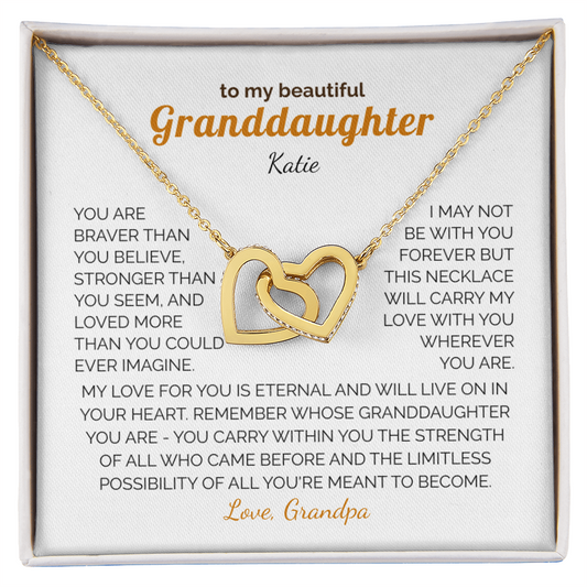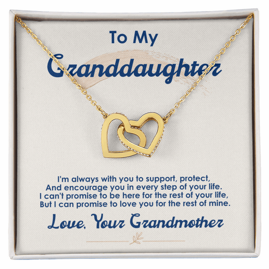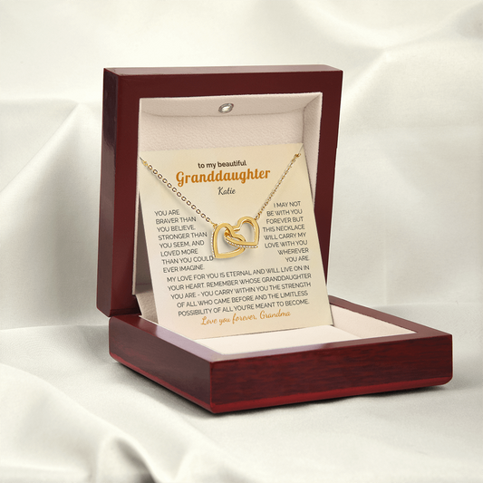 Personalized Granddaughter Gift Necklace - Interlocking Hearts Necklace with Message from Grandma or Grandpa