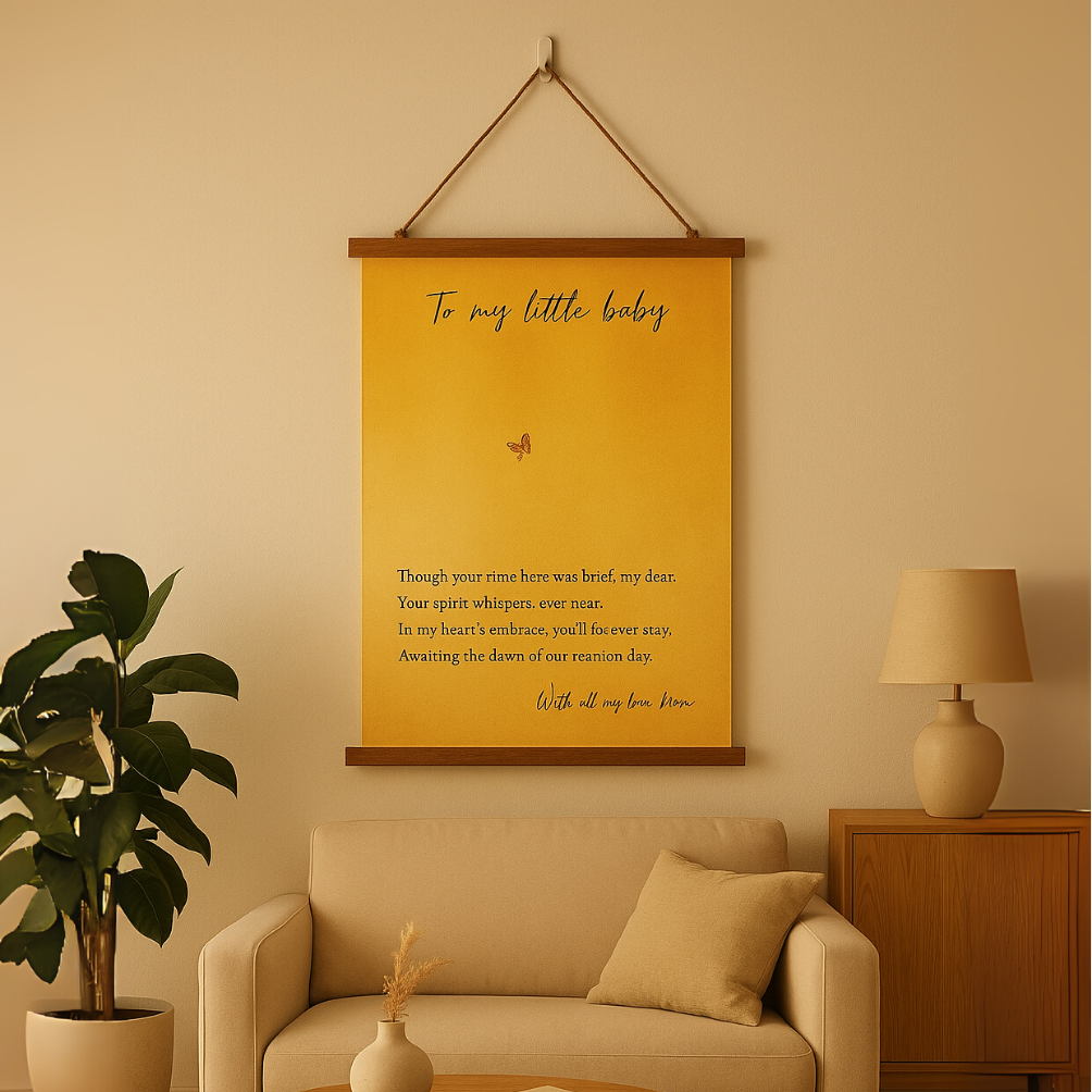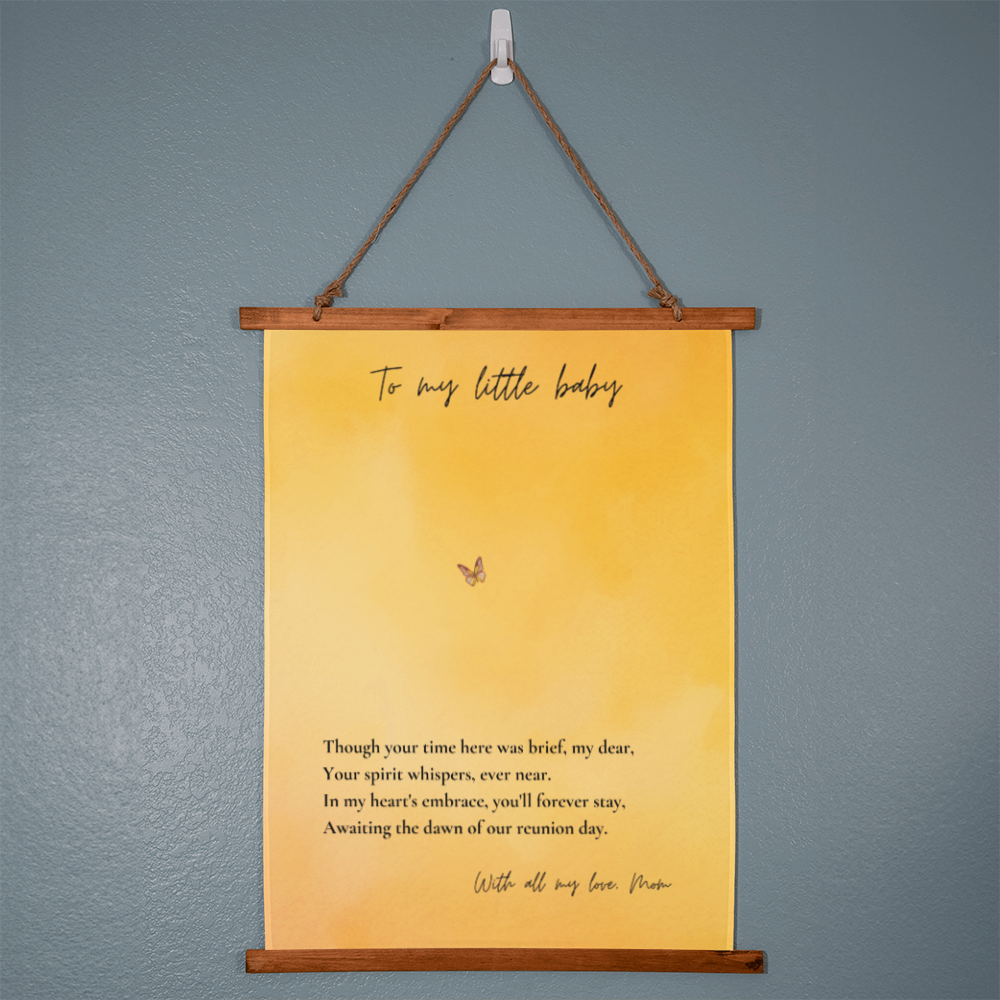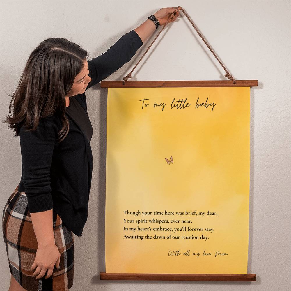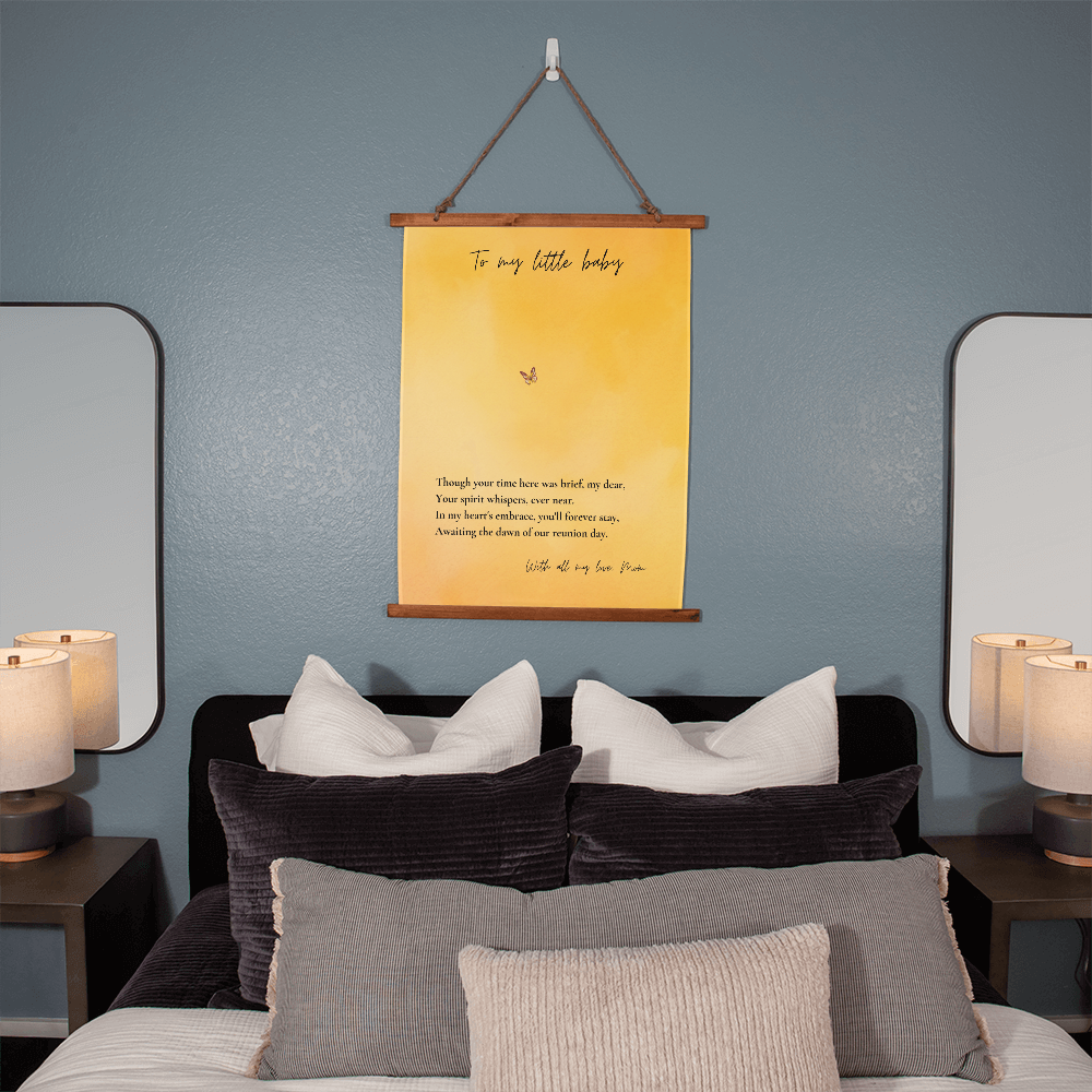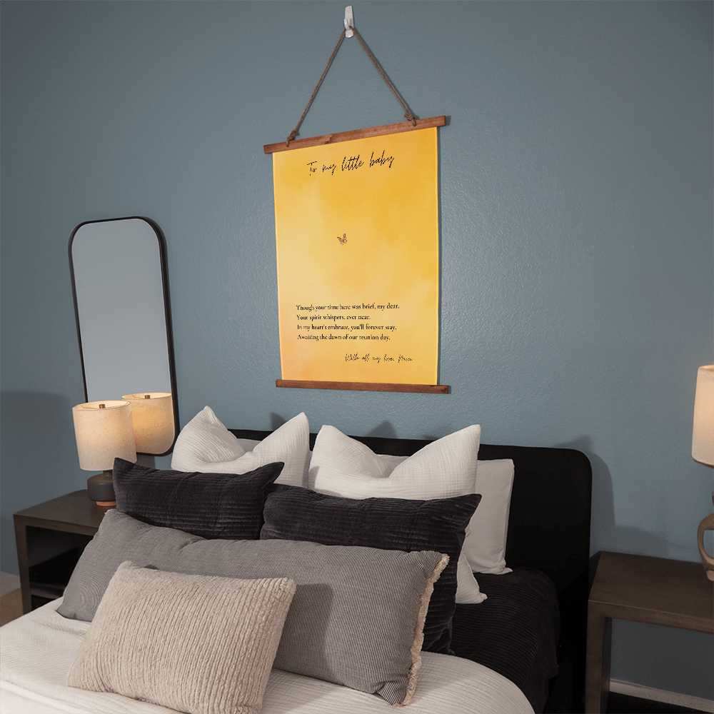 When words aren't enough to express the love you carry for your little one, this angel baby memorial tapestry speaks directly to your heart. Honor the memory of your precious angel baby with this heartfelt memorial tapestry featuring a gentle butterfly design and loving message. This pregnancy loss wall art serves as a meaningful keepsake for mothers navigating infant loss, miscarriage, or stillbirth grief.