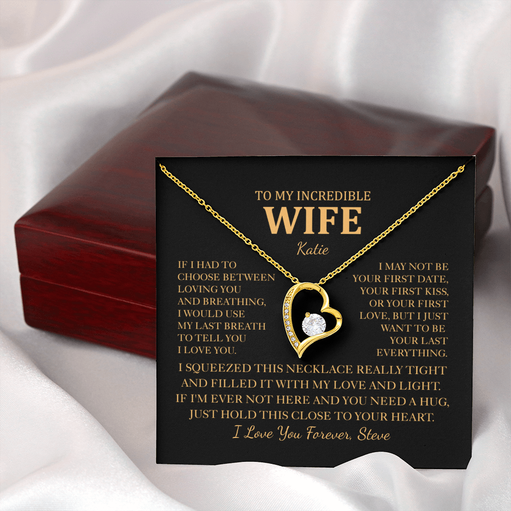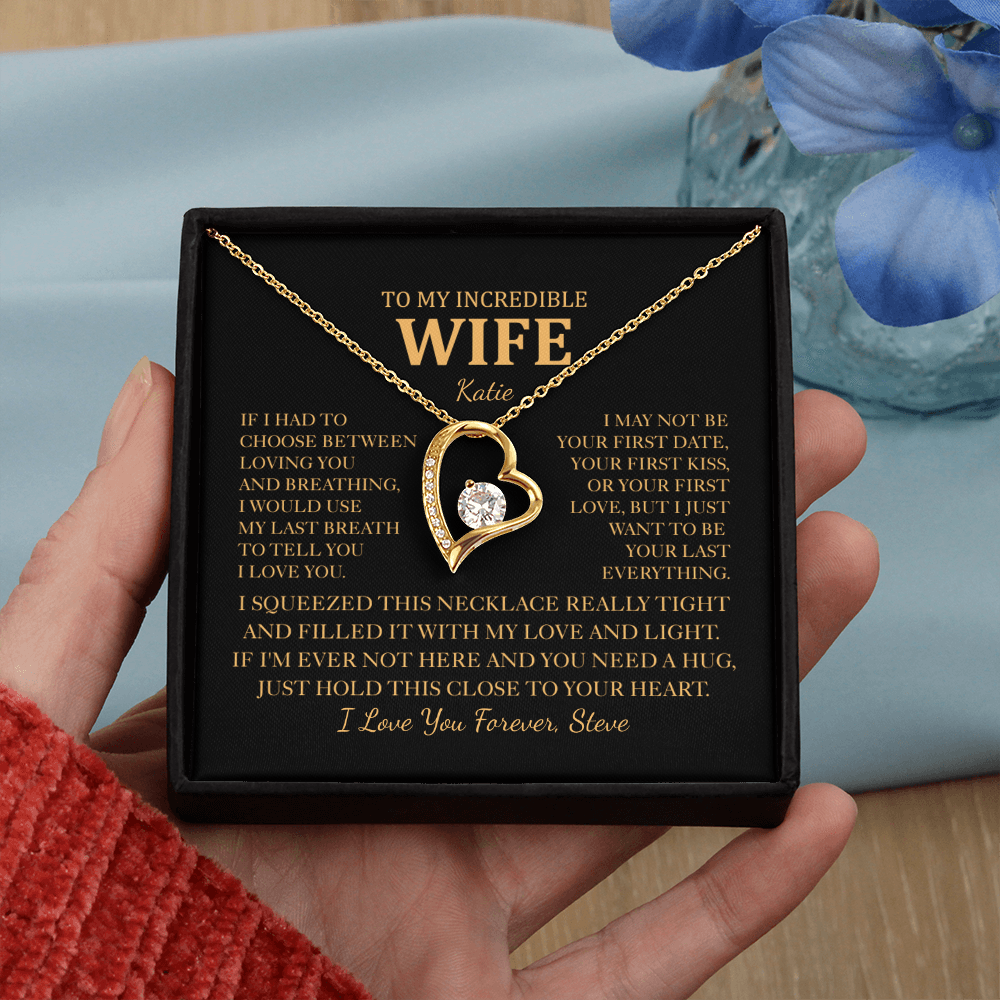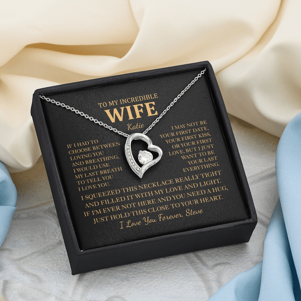 Personalized To My Wife Heart Necklace - Romantic Gift Set with Message Card