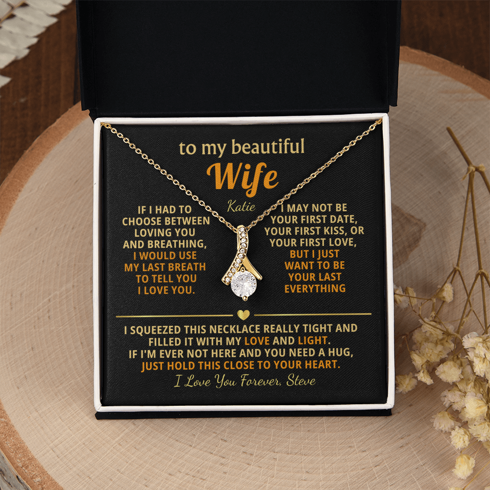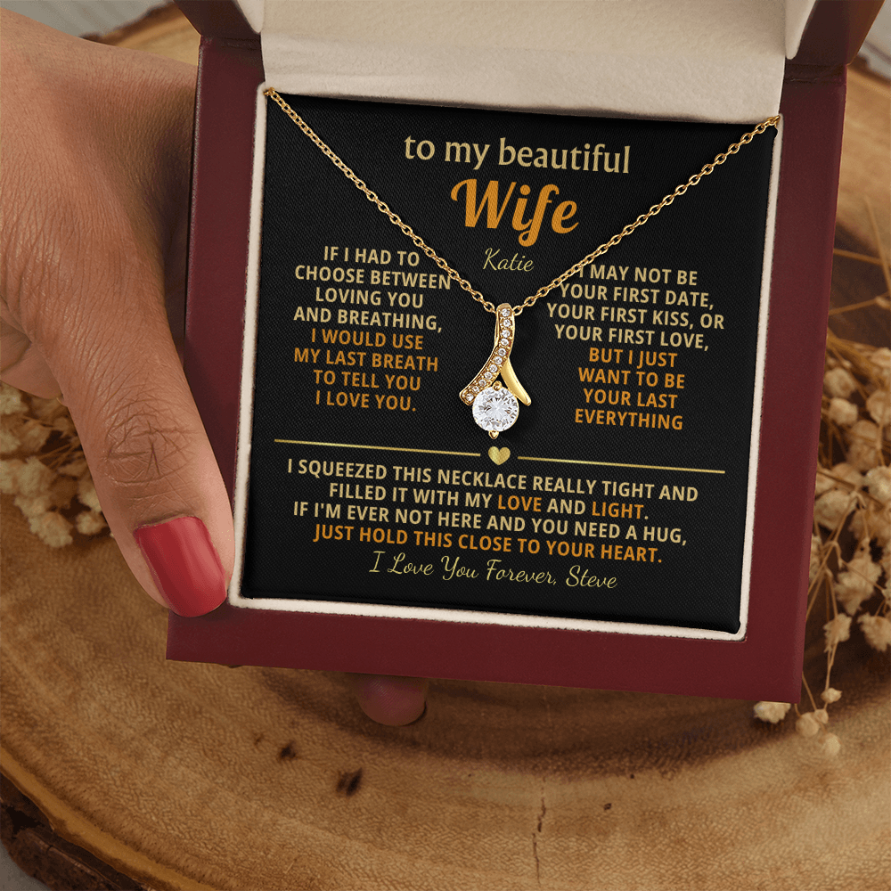 Surprise your wife with a gift that captures the depth of your love. Inspired by the heartfelt words, “If I had to choose between breathing and loving you, I would use my last breath to tell you I love you,” this elegant necklace is more than jewelry — it’s a symbol of eternal devotion. 💖✨
