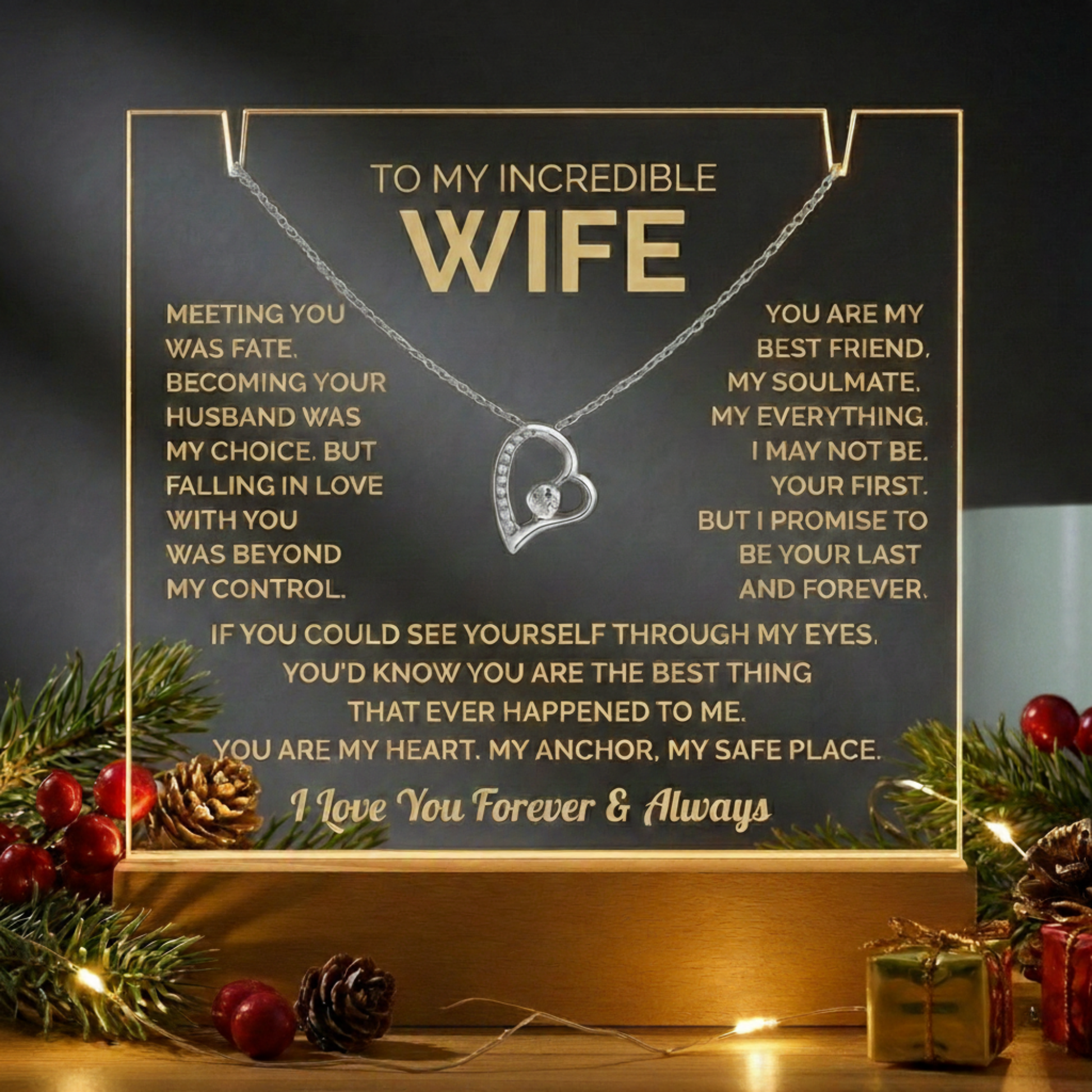 To My Wife Acrylic Plaque & Eternal Heart Necklace – A Gift She’ll Never Forget