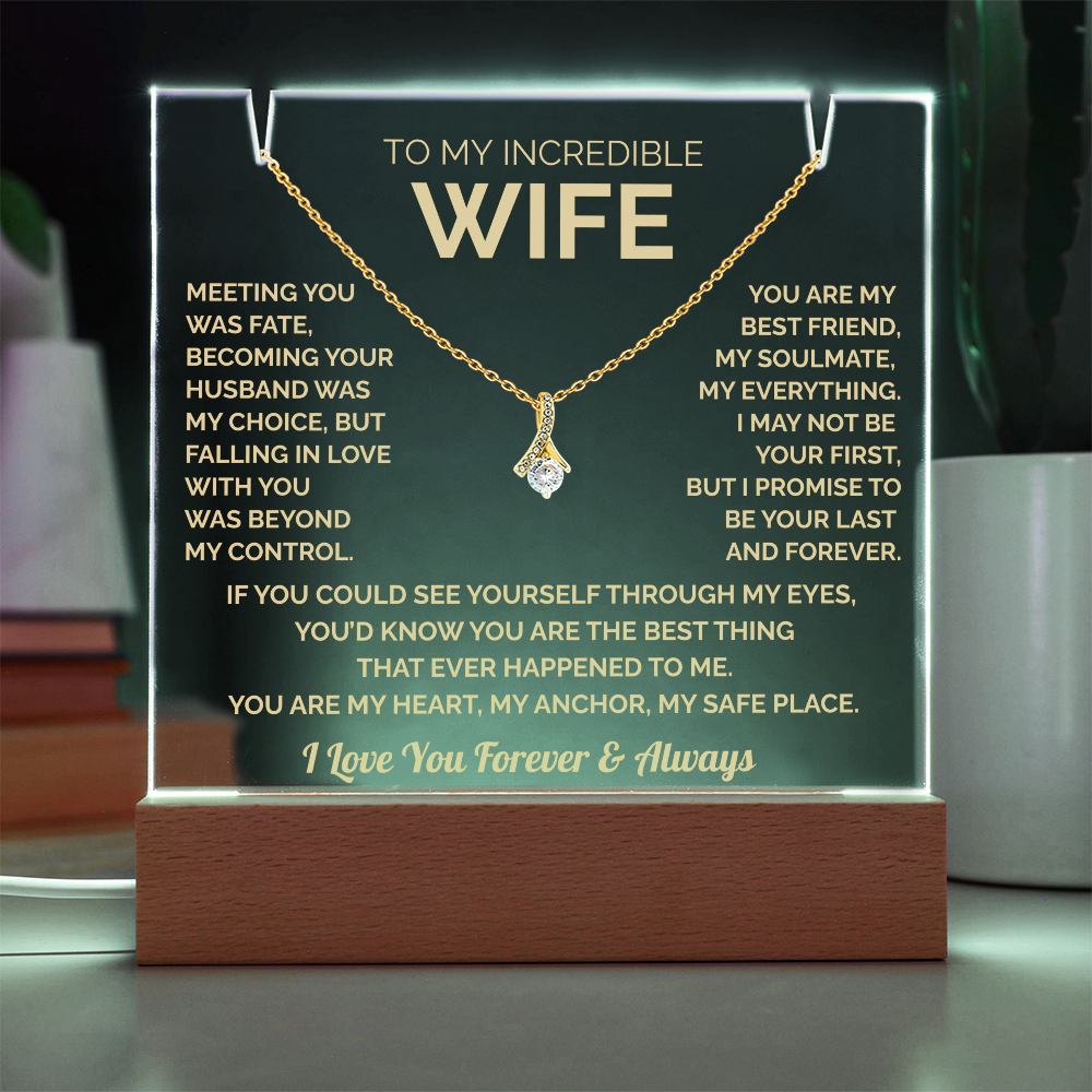 To My Wife Acrylic Plaque & Timeless Necklace: Heartfelt Gift for Wife, Anniversary & Birthday Keepsake, Christmas Gift Idea Husband to Wife